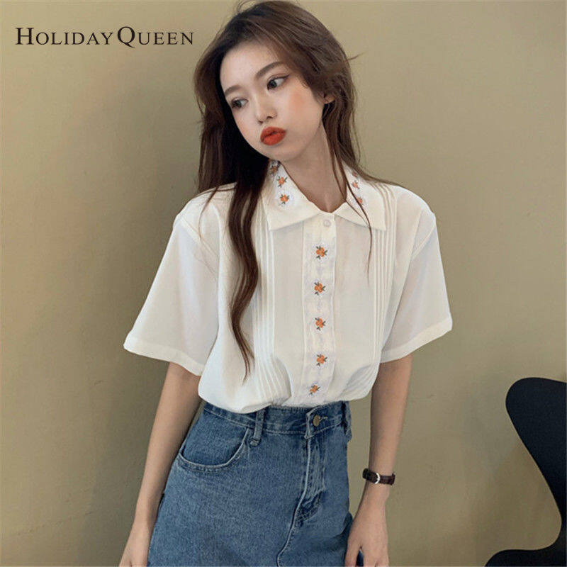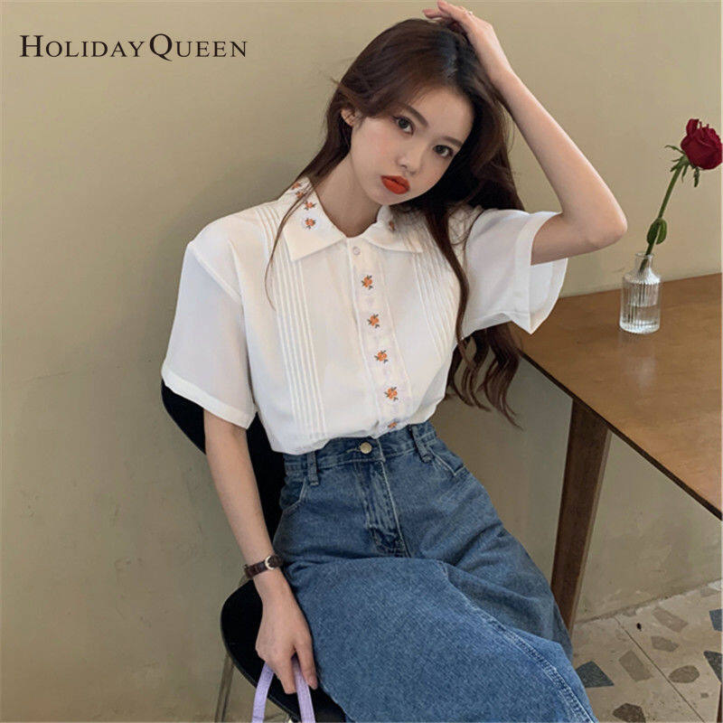 HolidayQueen Girl Summer White Shirt Women's Design Sense Niche Top Summer Short-sleeved ShirtWomen's clothing HQP0903