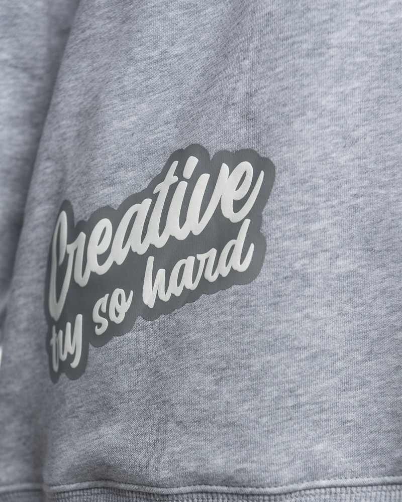 Regular Solid Coloured Long Sleeve Sweatshirt with Round Neck. Comes with MN Fleece Patch and Creative try so hard Slogan at the front. Made of cotton.