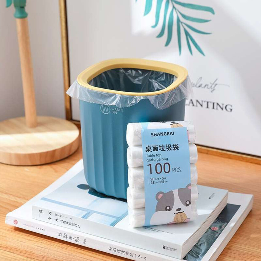 【Ready Stock】100pcs Small Trash Bags 5Rolls Mini Garbage Bag Household Thickened Small Desktop Garbage Can Garbage Bags Disposable Trash Bags Kitchen Tools